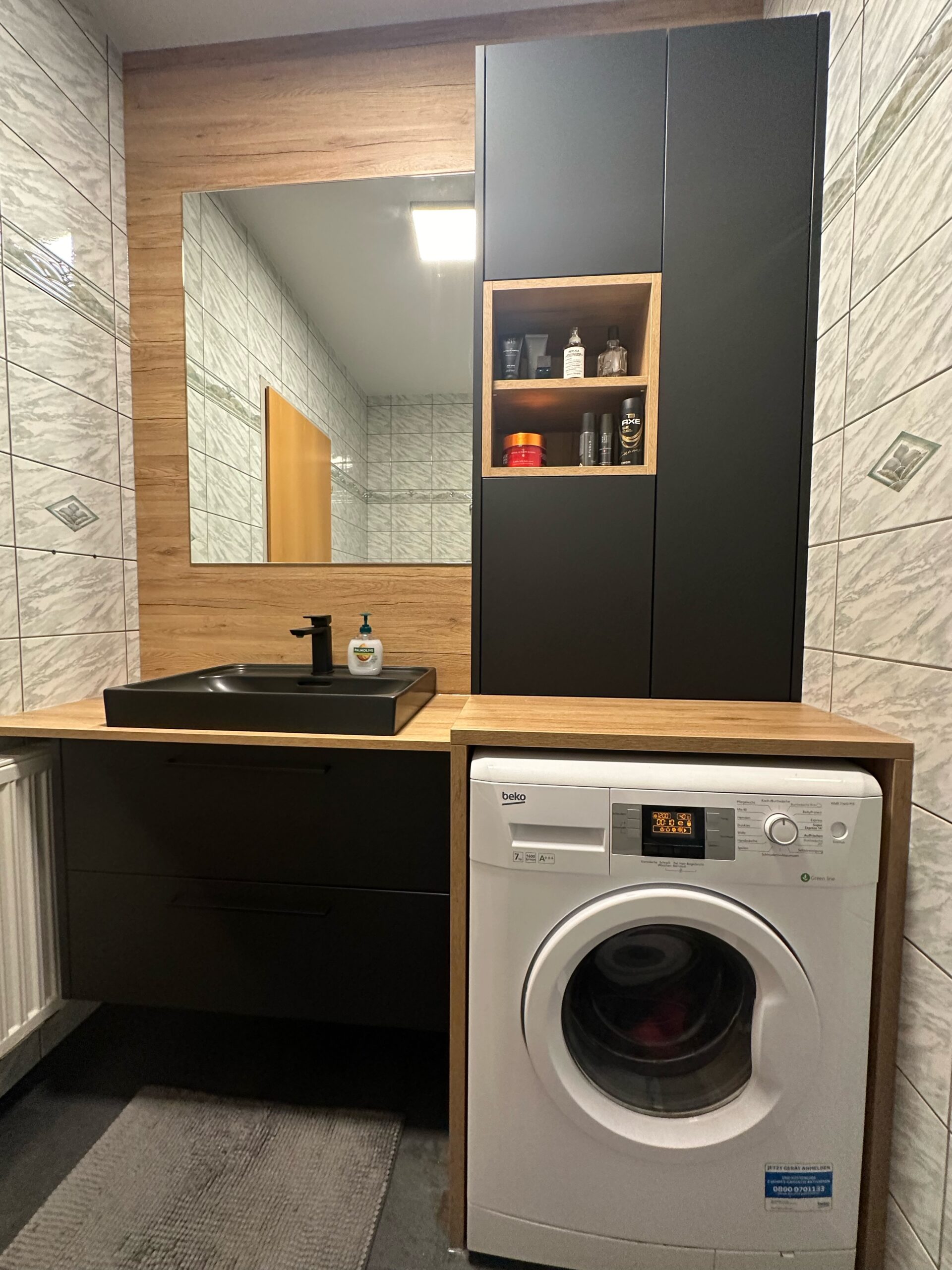 -Badezimmer in Eiche San Remo/ Raven Black supermatt