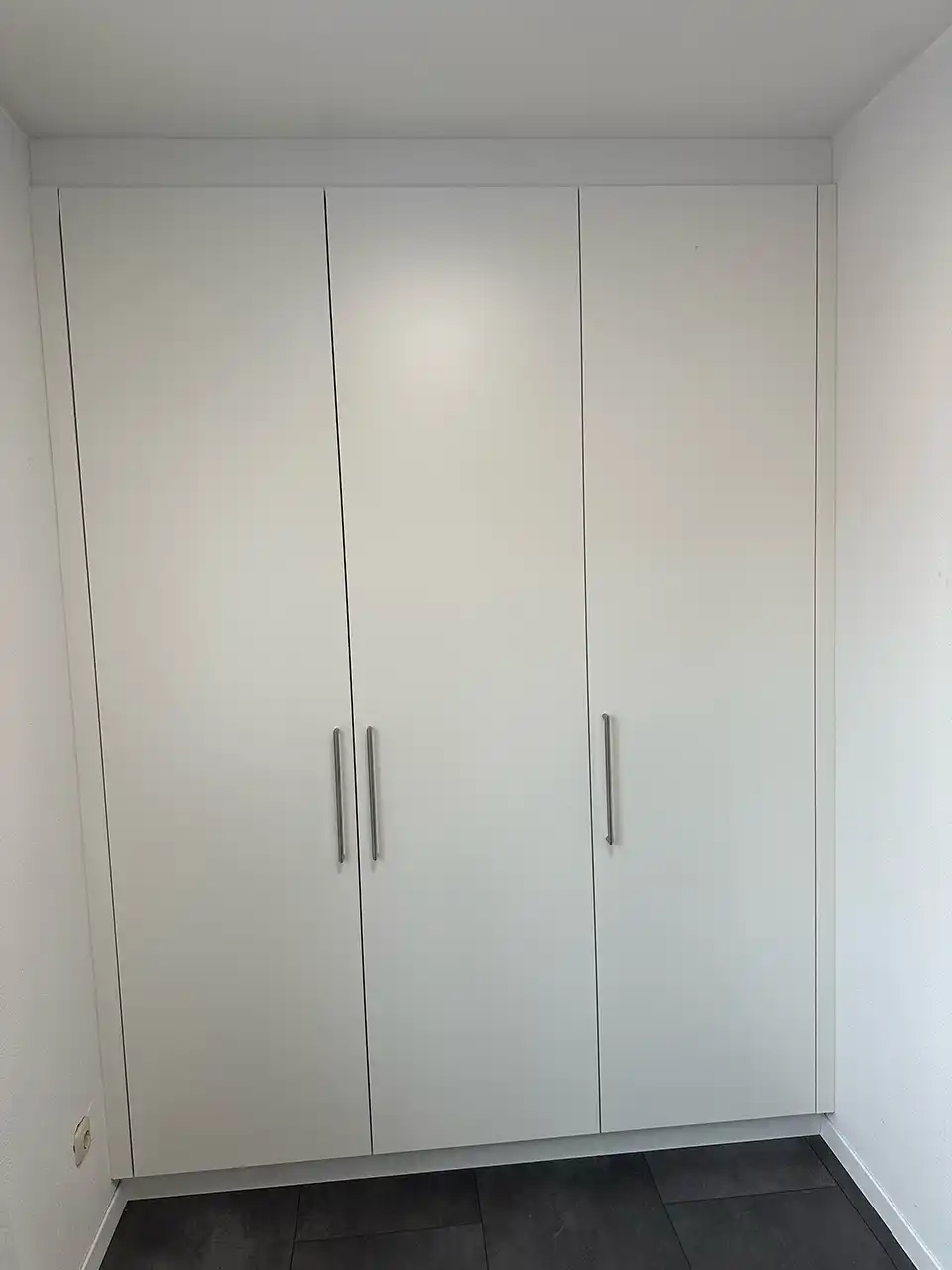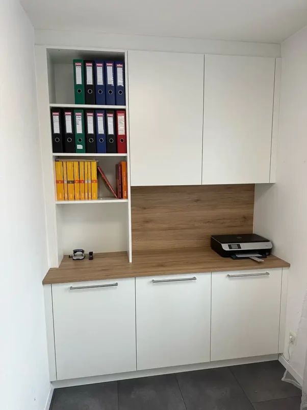 Büromöbel / ein raumhoher Schrankverbau sorgt für viel Stauraum.