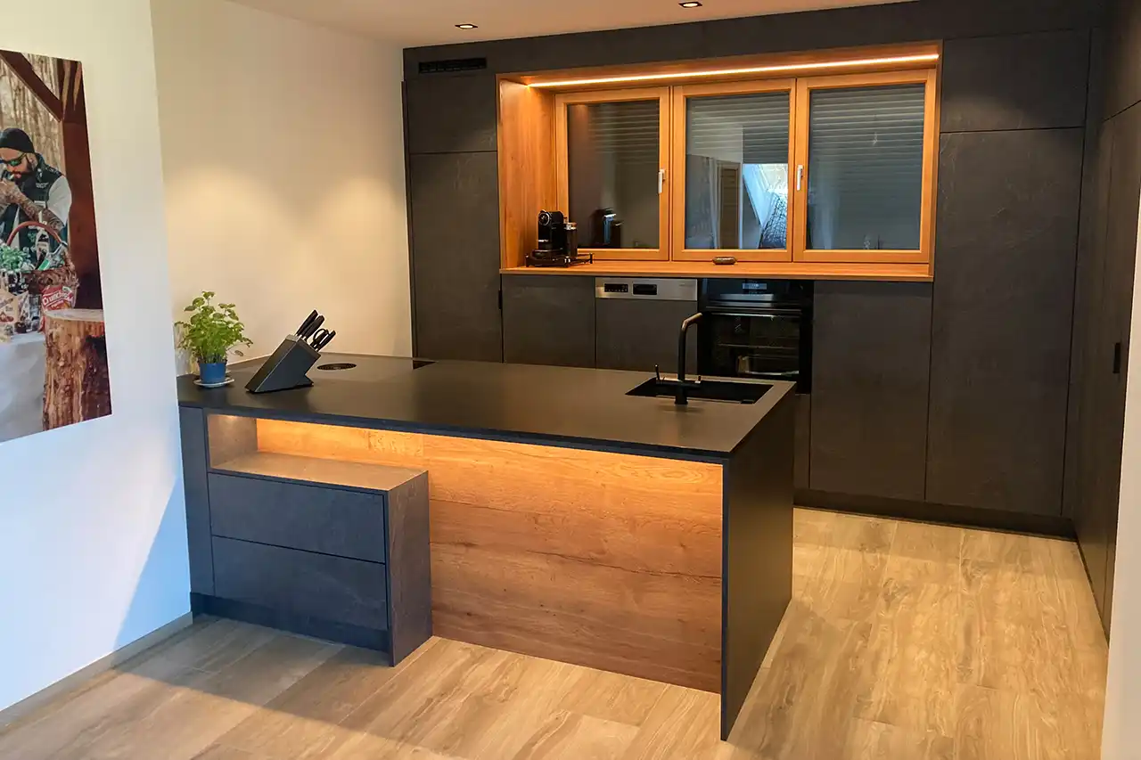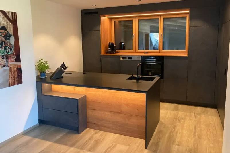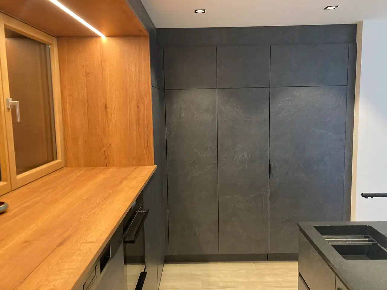 Hier durfte ich eine eine toll geplante Küche montieren. Das besondere ist die Speis hinter einer Küchenfront.
